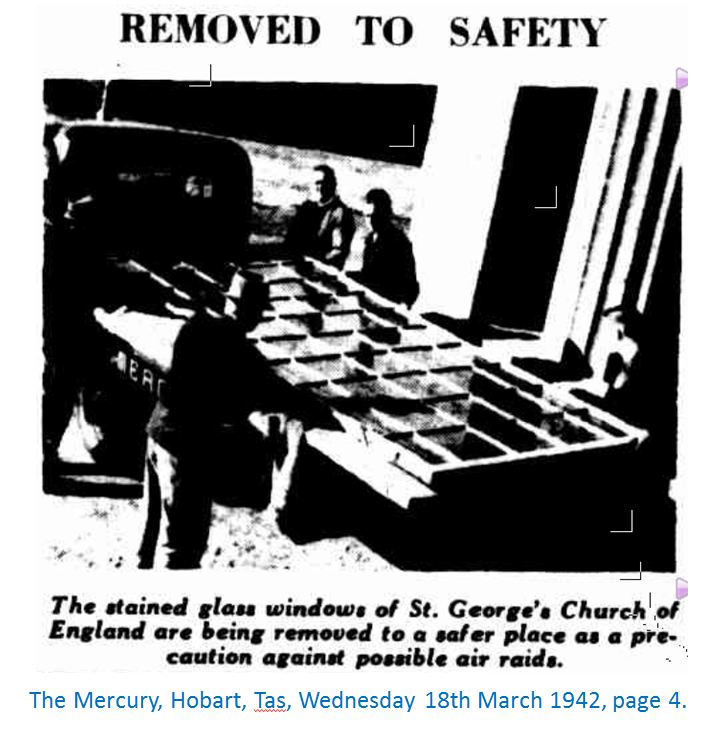 “I was reading your article on your website about a window designed and executed by Ferguson & Urie in 1866 for Mr John Cameron’s donation to St John’s Anglican Church in Launceston. In that article you refer to “the missing three quatrefoils depicting the Dove and Apha & Omega” that were part of the original window. I am happily able to report that those “missing” quatrefoils were saved, and are alive and well, and are on display in the same church, St John’s Church in Launceston, in a history display cabinet available to public view, properly labelled. Your article correctly records that these parts did not fit into the clerestory where the rest of the window has been for many years now.” [11]