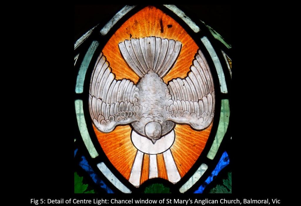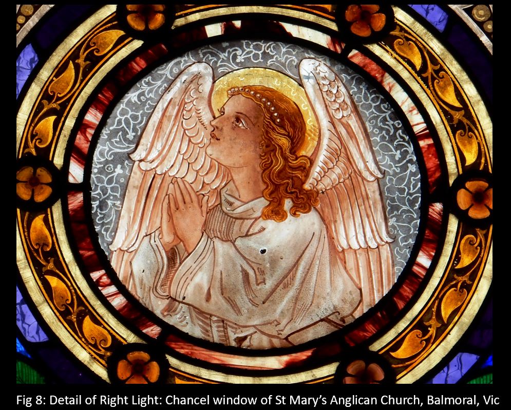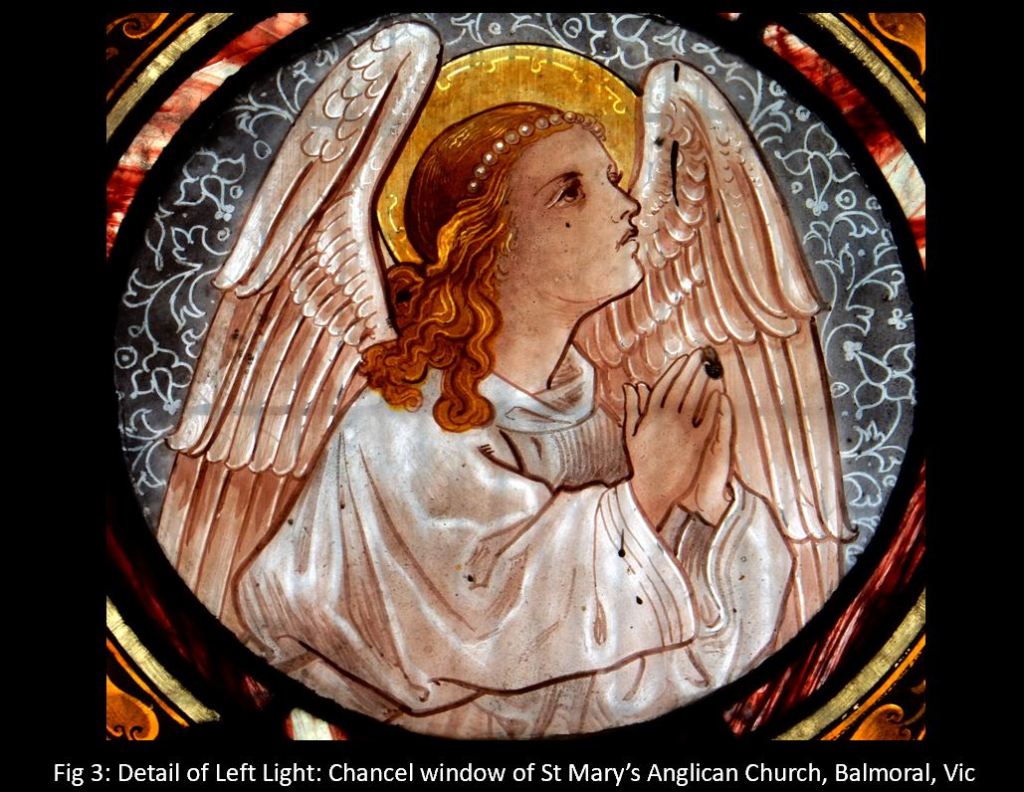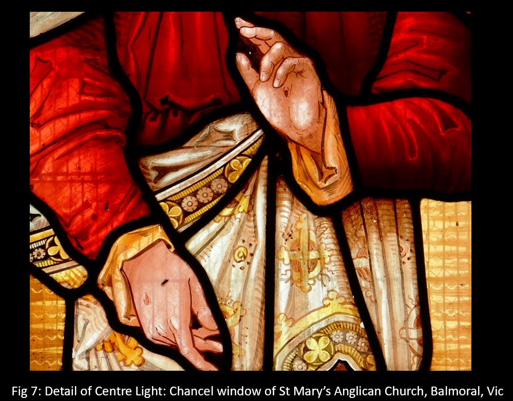 In early August 1877 the three light stained glass window had arrived from the workshops of the renowned Melbourne stained glass firm of Ferguson & Urie and was erected in the chancel. The Church of England Messenger published a very detailed description of the window: